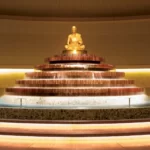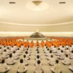 Equipped with state-of-the-art air and temperature control systems, the shrine is an oasis of serenity for those seeking a refreshing retreat and spiritual relaxation–within an hour drive from the capital city. The shrine contains seven meditation rooms, enough to seat 350 people, and a center chapel that can accommodate 1,500 people. At the center of the shrine is a stone altar supporting the solid gold statue of Ven. Phramongkolthepmuni, who had brought back the Dhammakaya (the body of enlightenment) lost to the world for over 2,000 years i.e. about 500 years after the Nibbana (passing) of the Lord Buddha.