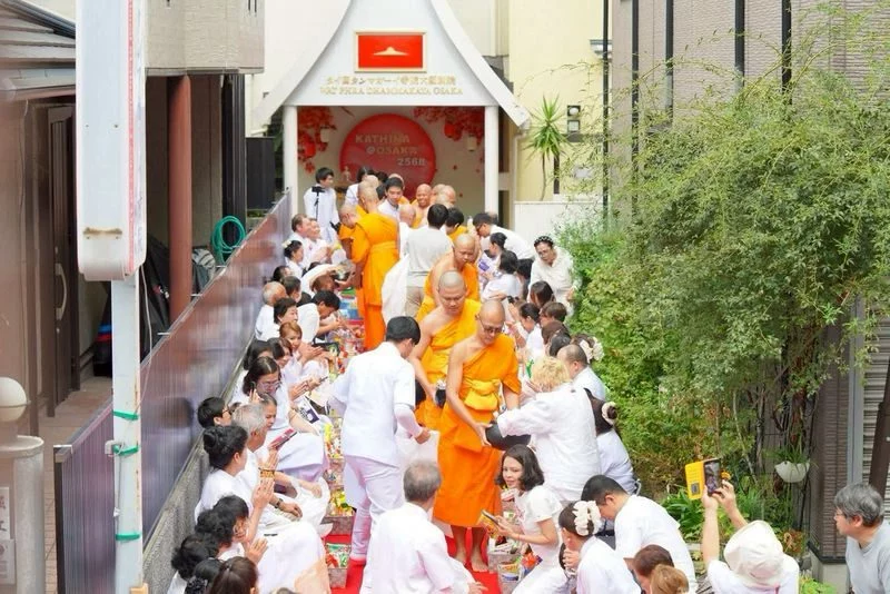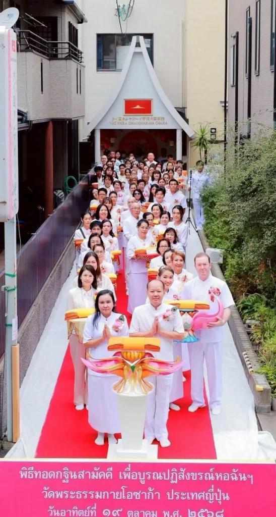 On 19 October 2025, Deputy Consul-General Pakprapai Kambanlue, along with Consul Veenus Assavaphoom, presided over Kathina ceremony of Wat Phra Dhammakaya-Osaka in Japan. This event was attended by Ms. Waris Charoenkal, mayor of Nong Suea Subdistrict Municipality and Ms. Sophita Charoenkal, deputy mayor of Nong Suea Subdistrict Municipality, the major host of Kathina robe offering and over 100 Buddhists from Thailand, U.S.A. and Japan.