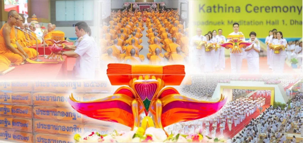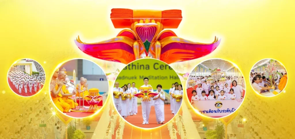 We invite you to participate in the Kathina Robe Offering Ceremony, one of the most important annual merit-making events. Every year, Dhammakaya Temple hosts this ceremony on Sunday in early November. This event historically draws a massive congregation of Buddhist devotees who travel from all corners of the country and even internationally.