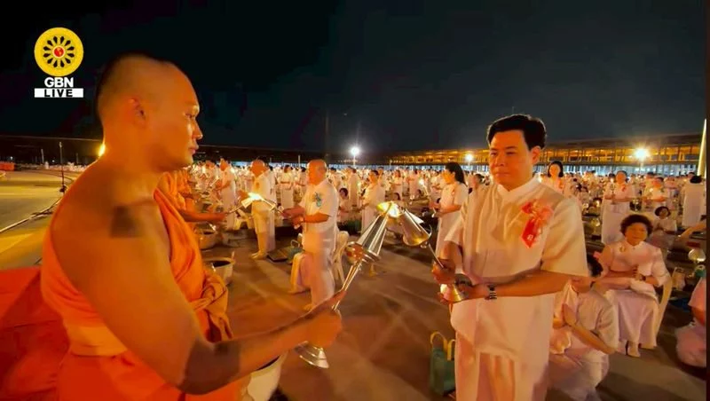 At night, all laypeople joined the “Zinnia of Prosperity” planting which was a part of Dhammayatra Project 2026, jointly lighted 20,000 lanterns in honor of the Buddha and Phramongkolthepmuni and celebrated the completion of 7,772,141,141 rounds of Dhammacakka chanting. This event was broadcasted online through GBN channel and Zoom.