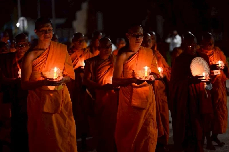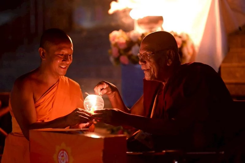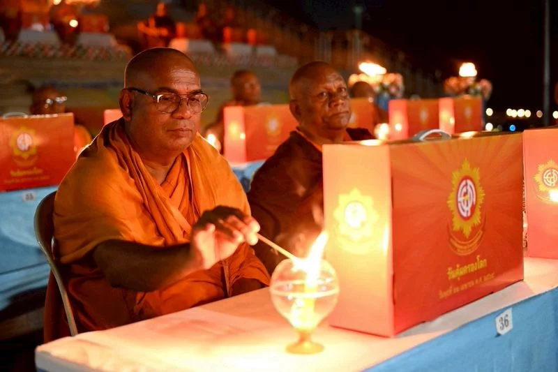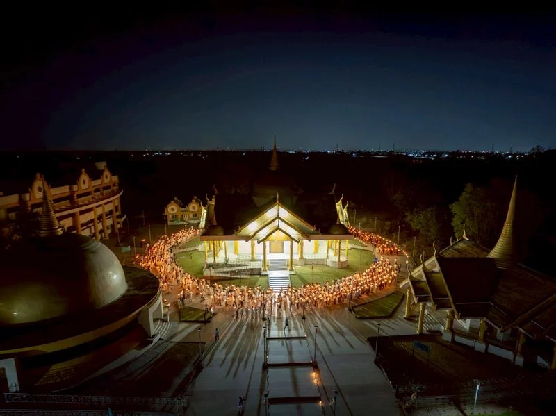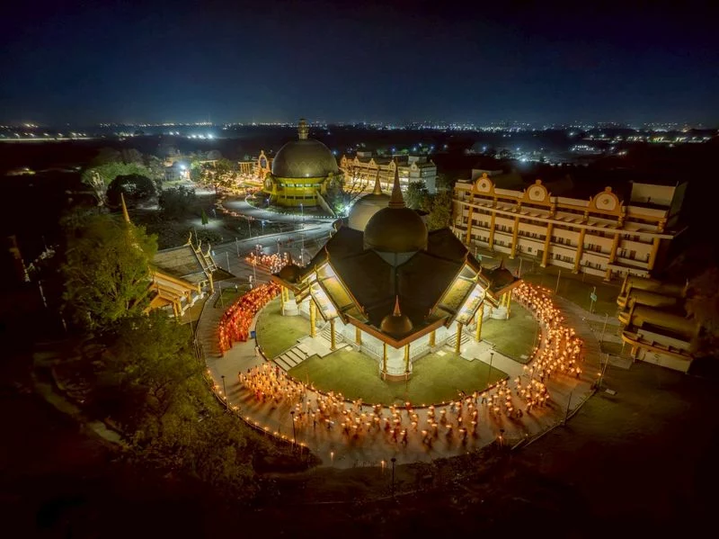 In this event, on behalf of Venerable Phrakhrupaladrattanaveerawat, abbot of Wat Phra Dhammakaya, Venerable Phramaha Nopporn Punyachayo, assistant abbot of Wat Phra Dhammakaya, delivered a speech on Luang Por Dhammajayo’s guidelines of Buddhism revival in the birthplace of the Buddha, distributed souvenirs, led the lighting of 1,082 lanterns, gave a speech of Sammodana, led the circumambulation of a sacred place for the laypeople at Wat Buddhasantiwan Dhammachai.