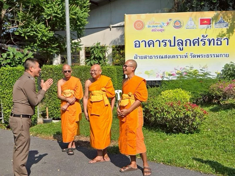 On 2 February 2026, at Wat Phra Dhammakaya in Pathum Thani province, Venerable Phrakhrupaladrattanaveerawat, abbot of Wat Phra Dhammakaya, together with Pol. Col. Taweesak Jindasak, deputy commander of Border Patrol Police Division 1 and his group, inspected the arrangement of test venue at Plook Sattha 2 Building for recruiting “Border Patrol Police Teachers”.