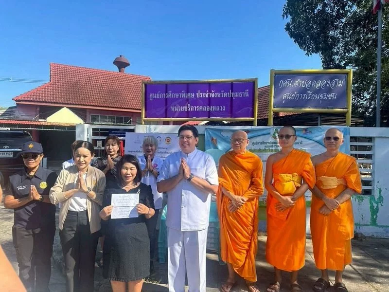 On 16 December 2025, Venerable Phrakhrupaladrattanaveerawat, abbot of Wat Phra Dhammakaya, assigned Venerable Phramaha Nopporn Punyachayo (Pali scholar of level 9), assistant abbot of Wat Phra Dhammakaya, together with Venerable Phrakhrusamu Somchai Wangsatheero, representative of Dhammakaya Foundation and Mr. Ong-Ard Not Dhamma-Nitra, representative of Wat Phra Dhammakaya’s disciples to offer education funds and school supplies to Ms. Phattaraphorn Muenmaroeng, director of Special Education Center-Pathum Thani province (Khlong Luang service center). The education funds and school supplies will be used to support the education of vulnerable children group.